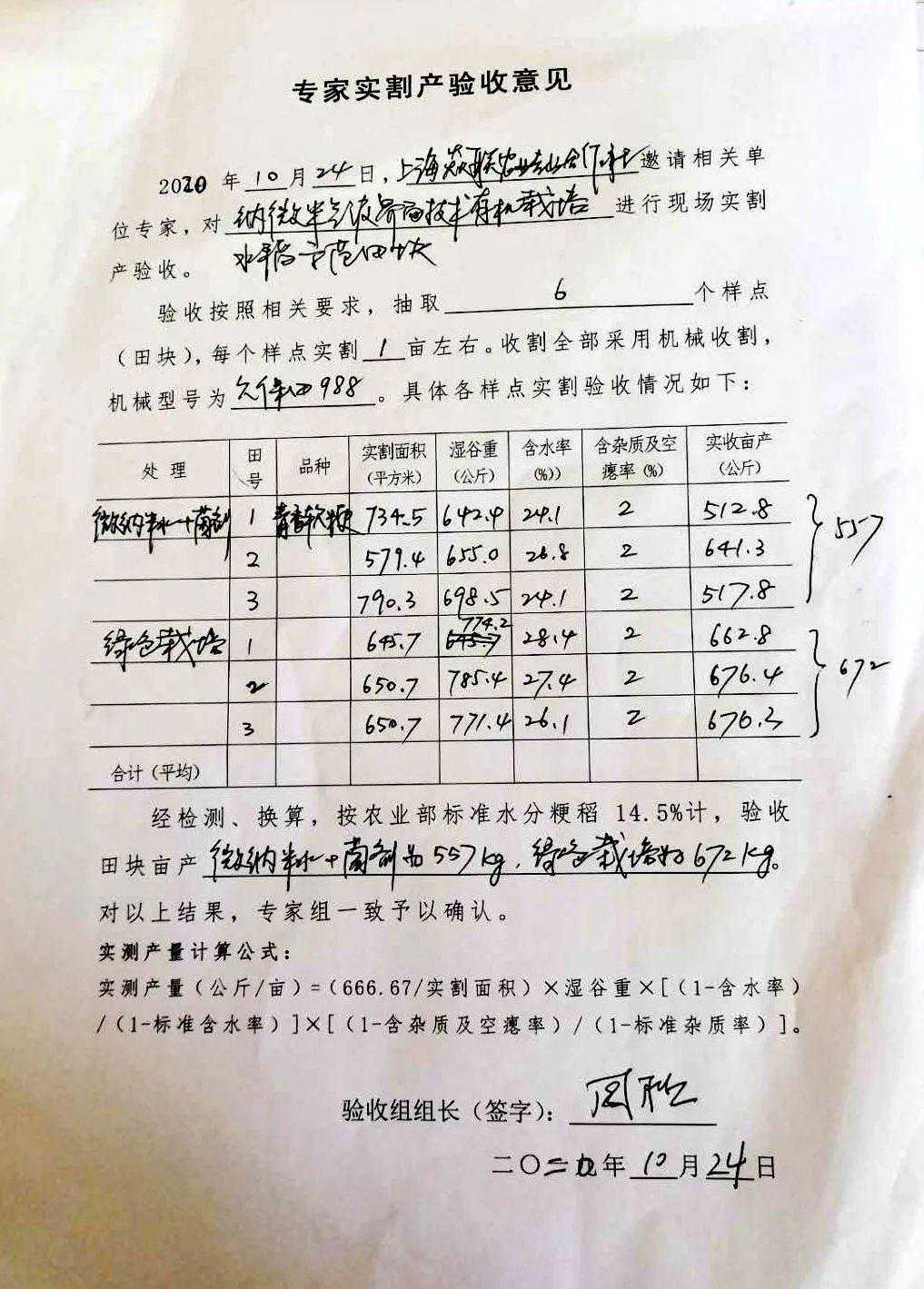 说了这么多,最后看一下近日专家实割产验收意见表吧!