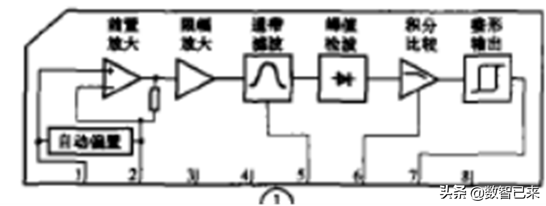 其中的前置放大器具有自动增益控制功能,可以保证在超声传感器接收较远反射信号输出微弱电压时,放大器有较高的增益,在近距离输入信号强时放大器不会过载;其带通滤波器中心频率可由芯片5脚的外接电阻调节,不需要外接电感,可避免外磁场对电路的干扰,可靠性较高。CX20106A接收超声波有很高的灵敏度和抗干扰能力,可以满足接收电路的要求。同时,使用集成电路也可以减少电路之间的相互干扰,减小电噪声。当接收到40kHz信号后,芯片7脚会出现较短的低电平,接入单片机便可以使单片机产生中断。