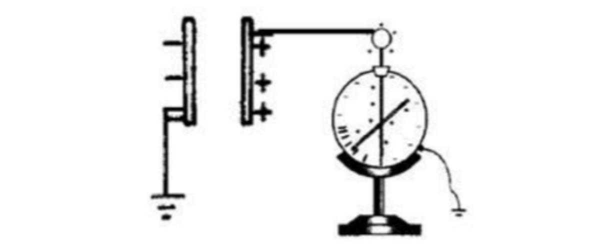 测电势差的原理:金属球、金属杆、指针相当于电容器的一个电极,金属外壳也相当于一个电极,它们之间是绝缘的。这就相当于一个电容,注意,这个电容的大小非常非常小。