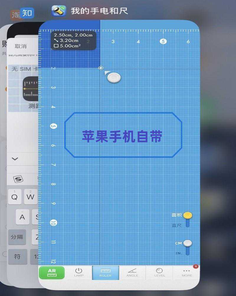 如果大家是苹果机型的话,手机上会有我的手电和尺工具,也可以用来测量尺寸,而且它也可以用来测面积,如果大家有苹果手机可以直接用,不过对我们安卓党就不那么友好了。