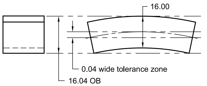 管控中心面要素形状的公差,通常与MMC(最大实体状态,M圈)共同调用;