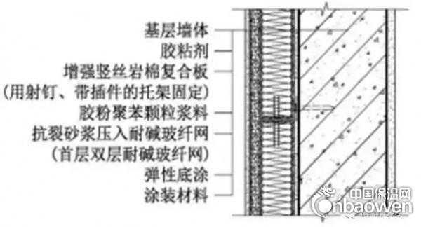 图11粘贴锚固增强竖丝岩棉复合板构造