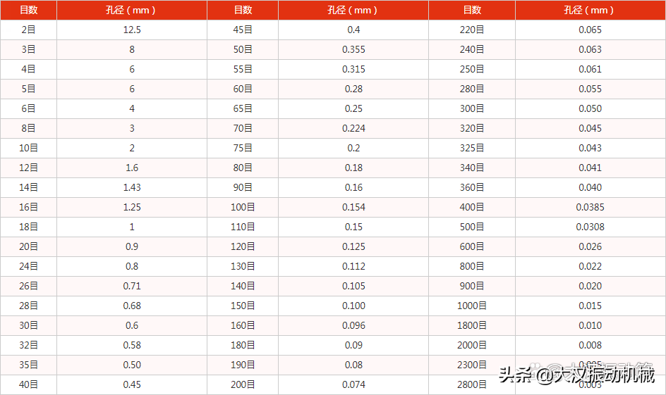 药典筛网目数和孔径对照表