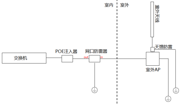 保证室外AP及其附属或相连设备(如:天线、避雷针等)都有做接地线处理,接地线时需要注意接入点的可靠连接地线方式,不建议使用螺丝钉等直接压接导线等方式接入地线,最好是其他设备接电线接入到同一个地网,以确保最大程度上的保证AP的安全性。