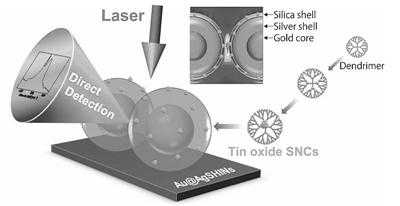 在研究中,日本团队致力于提升特定拉曼光谱法——表面增强拉曼光谱法的性能。他们表示,将包裹于惰性二氧化硅薄壳内的金/银纳米颗粒添加到样品内,可放大样品的光信号,从而提高该技术的灵敏度。因此,他们首先从理论上确定了金/银的最佳尺寸和组成,结果发现,100纳米银光放大器可极大地放大黏附在多孔二氧化硅壳上的SNC的信号。