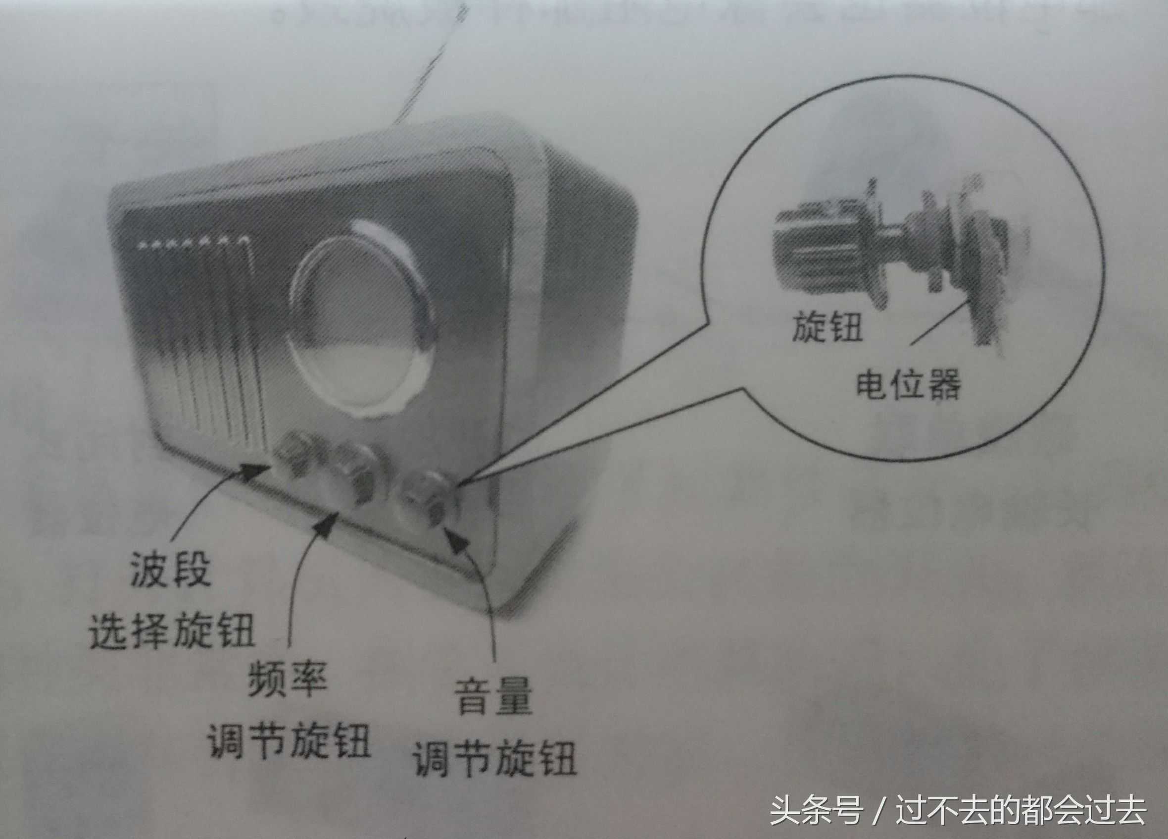 在身边的调光灯,收音机,功放机上也许还能找到电位器。下图为收音机上的三个基本调节旋钮。波段调节旋钮,频率调节旋钮,音量调节旋钮。其中音量调节旋钮就是一个电位器,我们用手拧动旋钮就可以调节音量的大小。