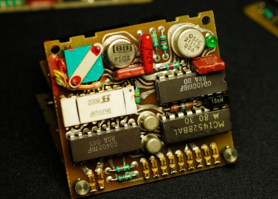 第三块电路板,白色很显眼的芯片其实是一个模拟开关。金属罐子是运放