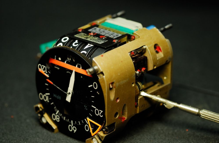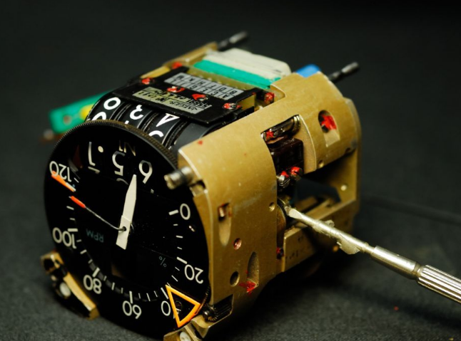 这个小部件在上电后会抬起数字指示前方的黄色标记,断电后自动落下,用于指示仪表运行状态,防止飞行员在仪表故障或断电情况下读出错误数值