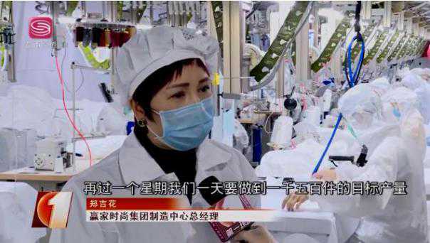 赢家时尚集团制造中心总经理郑吉花还表示,我们的目标是一天要做到1500件的产量,我们多做一套衣服,就能为医护人员提供多一重安全防护,我们现在最迫切的希望就是将这些防护服早日送到医生们的手上,让他们没有后顾之忧的治病救人。