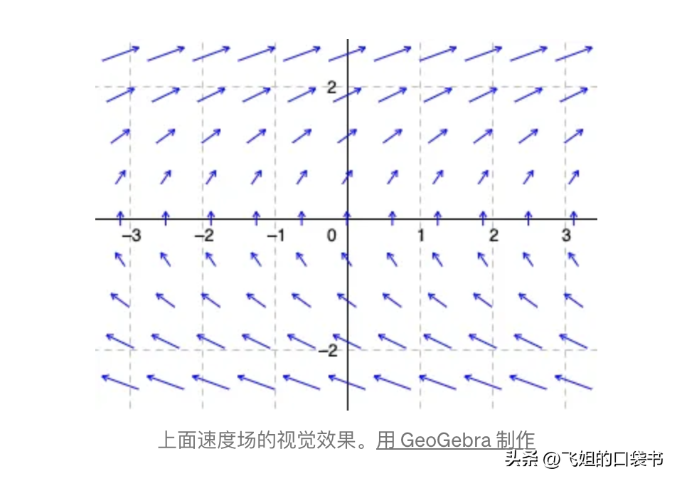 在这个速度场中,流体的运动只依赖于纵坐标。换句话说,所有具有相同y值的点都具有相同的速度。这提供了一种非常理想化但有用的数学描述流体的方法。现在,涡度呢?