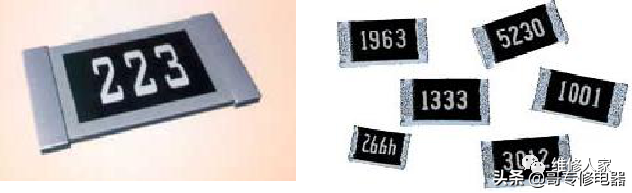 1、外观及阻值的标识:片式电阻器一般为表面黑色,底面及两边为白色,一般在外表面标出阻值大小;有两种形式: