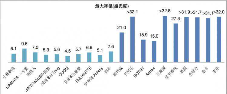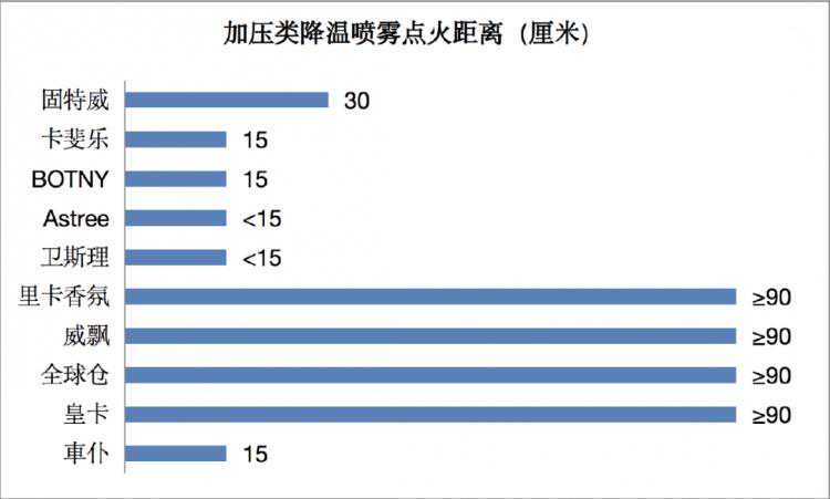 加压类降温喷雾的降温效果均在15℃以上,有6件样品的降温效果超过30℃,测试温度均降低至0℃以下。