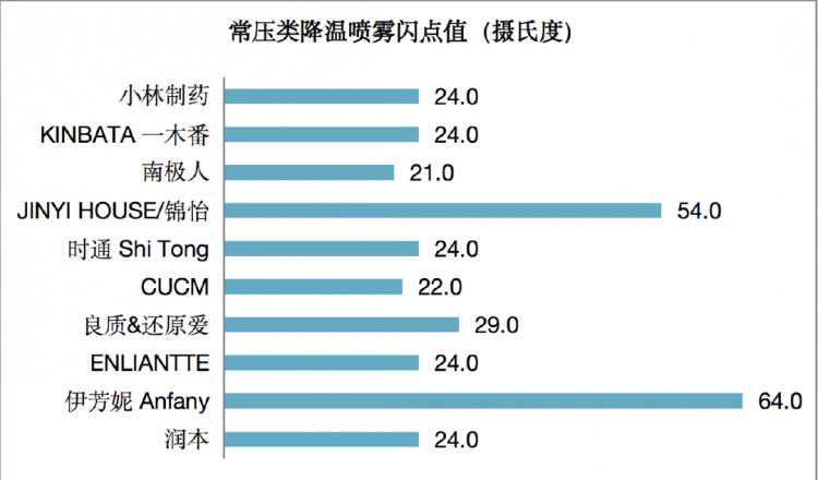 对剩余10件常压降温喷雾进行闪点试验,闪点值在21至54摄氏度之间,具有一定程度的易燃性。通过对样品成分的查验,发现9件样品含有乙醇成分。