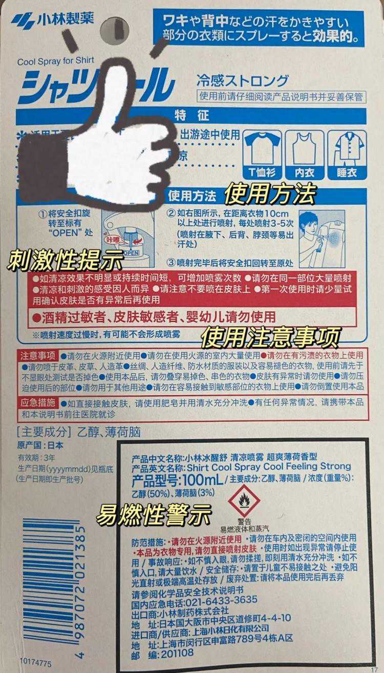 消费者在使用降温喷雾时,如果没有注意正确的使用距离和方法,或者对着皮肤直接喷射,很可能存在冻伤风险!!!