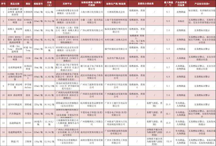 部分样品还缺少涉及使用和储存的相关安全要求,以及刺激性和冻伤风险提示等信息。