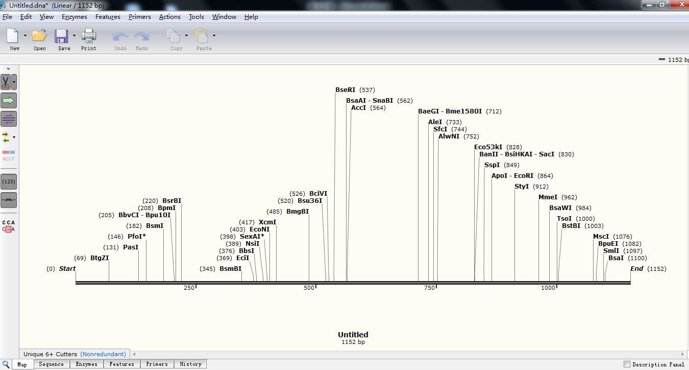 4.确定了可以用的酶后,接下来需要确定设计引物时用的这两种酶,确定方法:这两种酶最好不要邻近,最好使用双酶切有共同buffer的酶,两个酶切位点最好不要是同尾酶(切下来的残基不要互补),否则效果相当于单酶切。