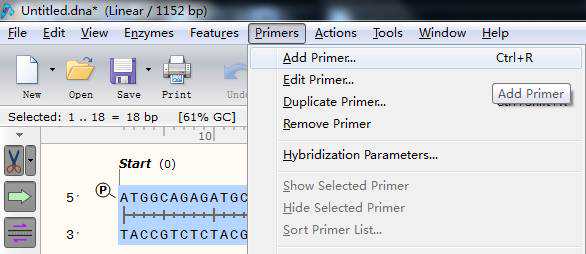 11.接下来拉取基因的下游的一部分序列,用同样的方法设计好下游引物,有一点需要注意的是,设计下游引物的时候选择bottomstrand。