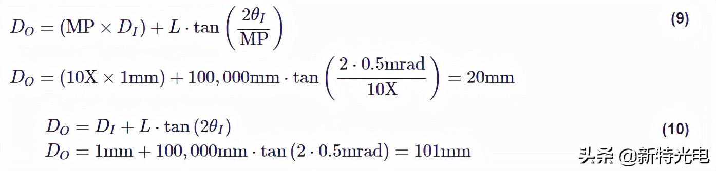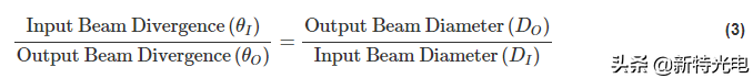 扩束镜通过放大倍数增大输入光束和减小输入发散。将等式4和5代入等式6,结果如下:
