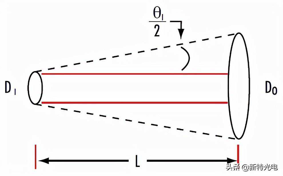 解等式4和等式5时,可以发现输出光束发散(θO)随输出光束直径(DO)增加而降低,反之亦然。所以,如果使用扩束镜来缩小光束,光束直径将会缩小,但激光的光束发散将会提高。小光束的代价就是形成很大的发散角。