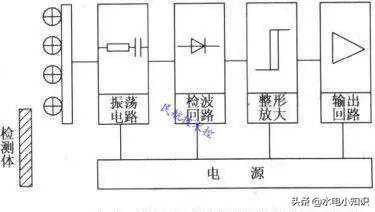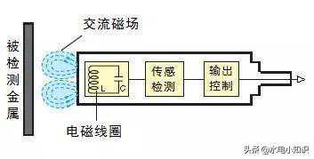 原理:由电感线圈和电容及晶体管组成振荡器,并产生一个交变磁场,当有金属物体接近这一磁场时就会在金属物体内产生涡流,从而导致振荡停止,这种变化被后极放大处理后转换成晶体管开关信号输出。