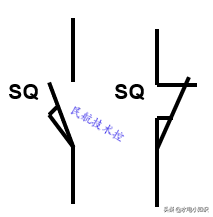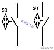 行程开关动作原理同按钮类似,所不同的是:一个是手动,另一个由运动部件的撞块碰撞。