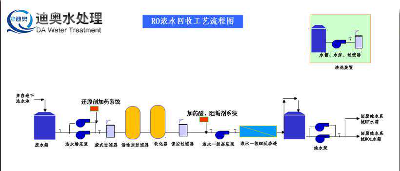 反渗透浓水处理量是非常大的,其特点是含盐量超高,在反渗透浓盐水零排放以及可回收资源利用的基础上,采用下面的工艺流程进行处理,最终达到零排放的目的。