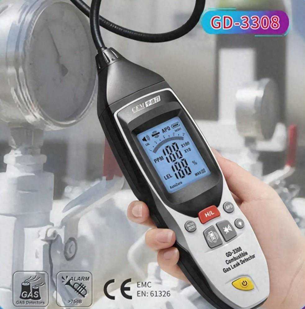 气体泄漏不仅浪费资源,还对人类健康和安全造成威胁,因此开发高效、精确的气体检测技术具有重要意义。随着工业生产的不断发展,气体测漏仪的应用范围也在不断扩大。未来,气体测漏仪将更加智能化、便携化和高效化。比如CEM华盛昌的专业气体检漏仪GD-3308,就是一种非常重要的安全检测仪器,凭借高灵敏度探头、狭小空间也能探测、多种可燃气体检测等功能,备受市场好评。