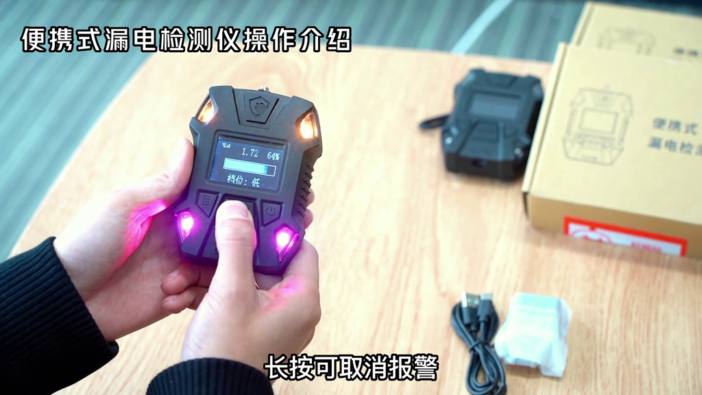 正文 便携式漏电检测仪——操作介绍 admin V管理员 /2025-08-24/51 阅读 0824 便携式漏电检测仪操作介绍。·第一步开机,长按开关键3秒直至屏幕亮起,模块进行初始化。·进入界面后中间横挡是检测到空气中的电磁场强弱,当白条充满之后表示电场强度达到报警值。·下侧的是挡位显示,分为抵挡和高挡。中间的SOS按键长按可发出报警信号,长按可取消报警。·当使用低挡位靠近电场源时会自动触发报警,发出滴滴响声,越靠近电源报警声音频率越高,远离电场源报警声响自动停止。·抵挡位转换高挡位,直接短按1秒挡位调节键即可。高挡位测试,触发报警距离可调。 -- 展开阅读全文 --