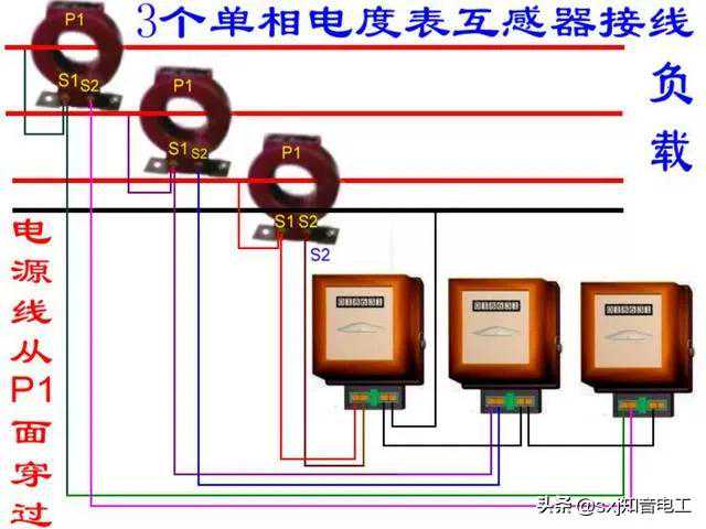 (正常穿线要求是:电源测的电线一次穿芯方向,应从P1侧穿入,P2侧穿出)。