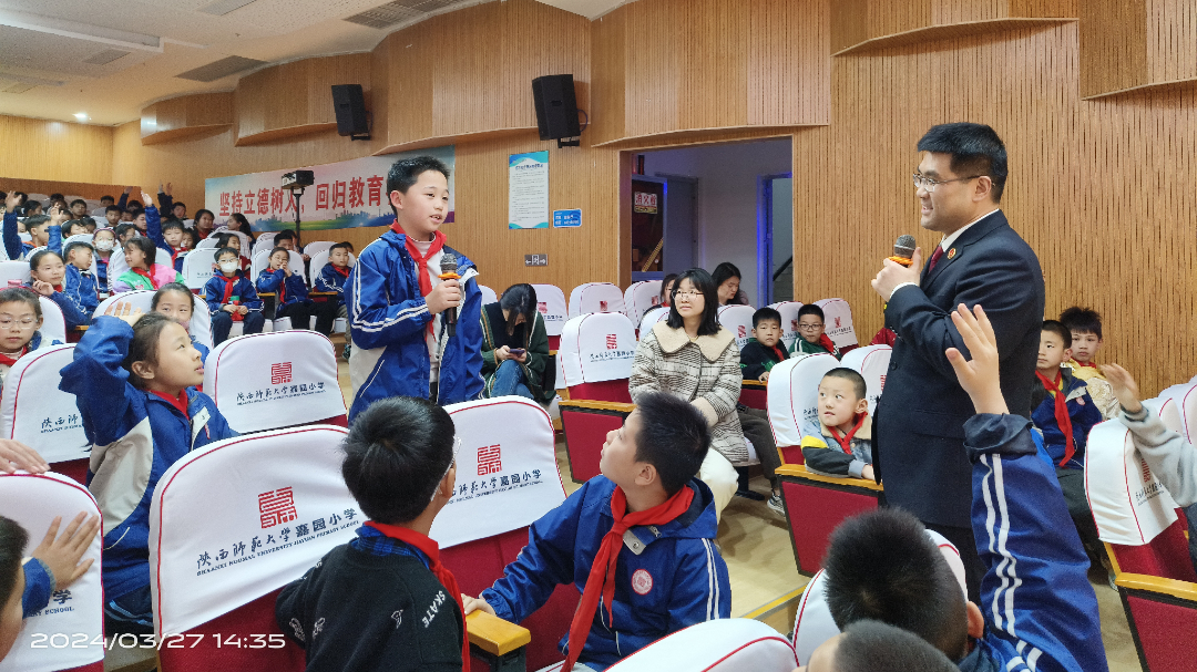 为提高未成年人法治意识和自我保护能力,预防校园欺凌,促进未成年人健康成长,3月27日下午,高陵检察院联合团区委、区妇联、区关工委等部门走进高陵嘉园小学,为该校师生带来一堂精彩纷呈的法治教育课。