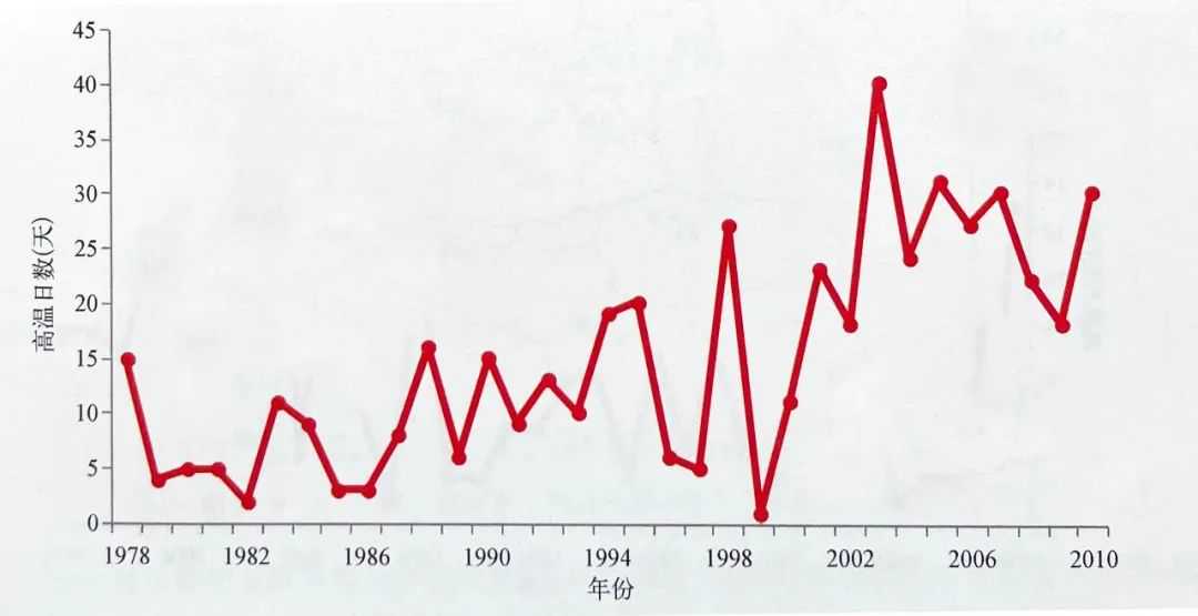 近二十余年,随着全球气候变暖的大趋势,以及西太平洋副热带高压的活跃,上海夏季高温天数有所增加。