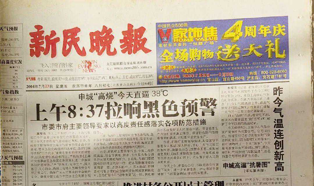 《新民晚报》2004年7月23日头版报道上海高温