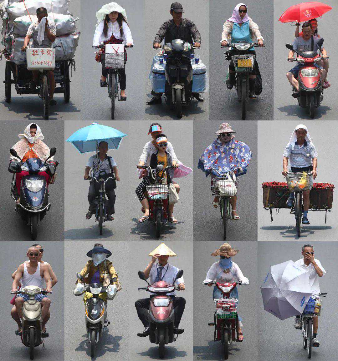 2013年盛夏,上海街头各式防暑装备