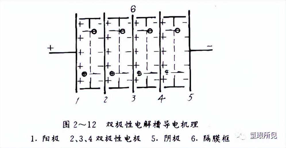 所谓双极性电极就是在电解过程中,这种电极的一个侧面作为阳极产生氧另一个侧面作为阴极产生氢,一块极板具有两种极性。隔膜把相邻两个电极所产生的氢氧气隔离开,这相邻两电极便构成电解小室。电解槽的一端接正极另一端接负极,与电源是串联起来的。所通过的电流大小对每一个电解小室都是一样的(微量电流漏损)总电压为所有电解小室电压之和。
