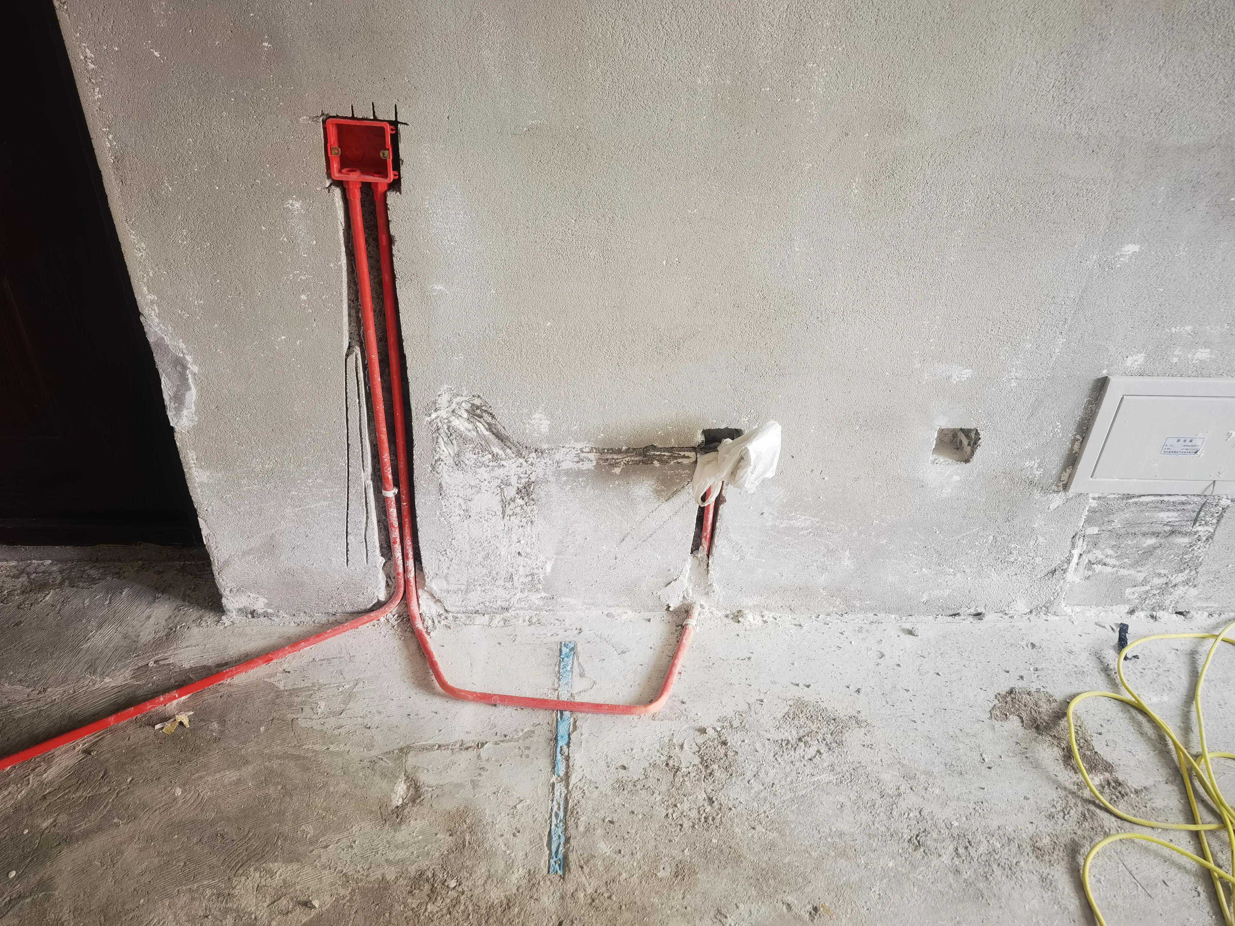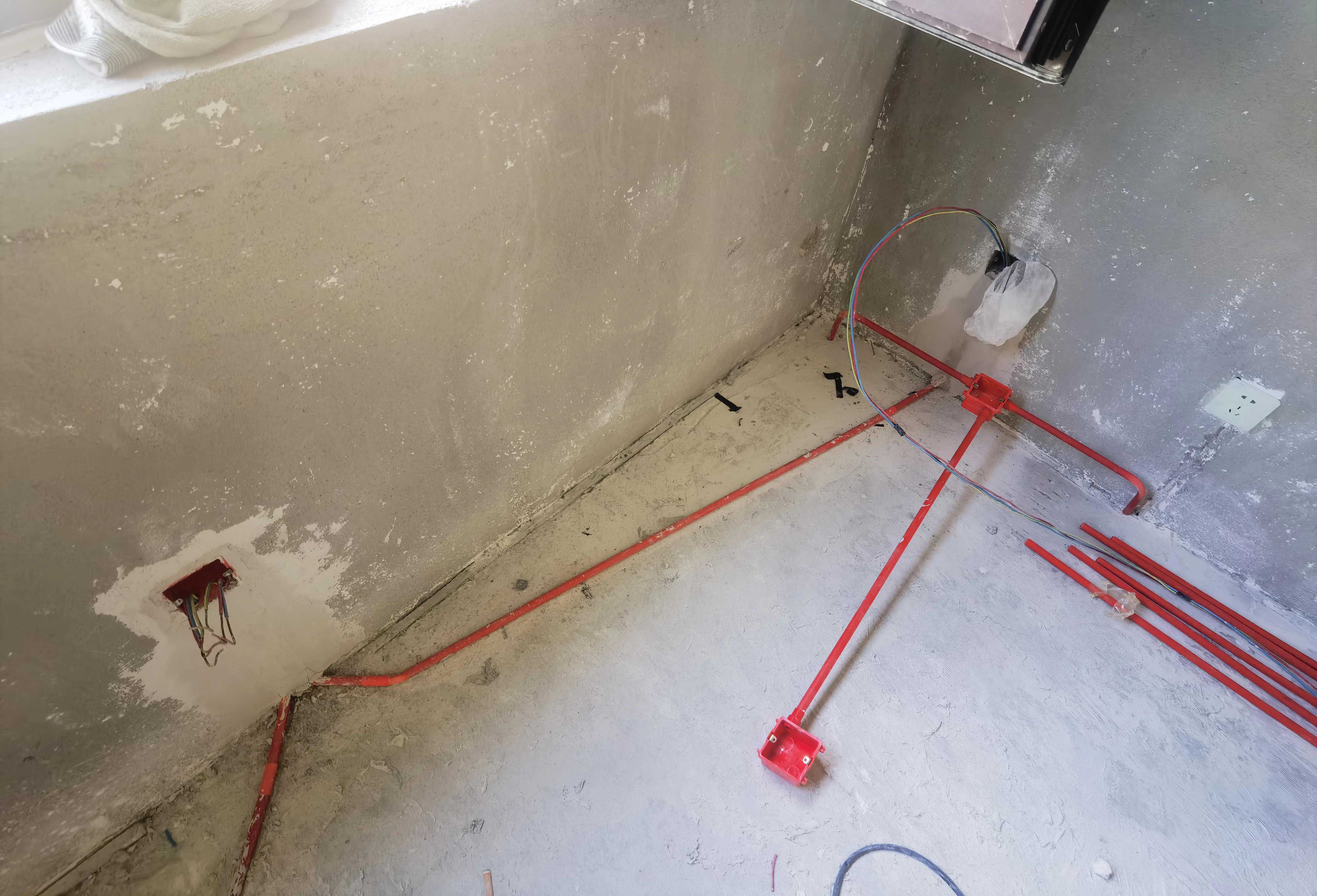 第4步,开始布线管和电盒,线管做弯,需要用弯簧,(买电线管的时候尽量买壁厚较厚的,这样弯起来线管不容易变扁,方便后期穿线,插一句,好多装修公司都说开发商用的管材质量不行,其实99%的开发商用的管材都是质量合格满足国标的,比装修公司买的那种红色蓝色的线管质量要好很多,看壁厚就能看出来),线管做弯时,千万不要做死弯尽量让弯顺滑,要不然后期穿电线很费劲,以及多年后电线坏了换电线抽出来也很费劲
