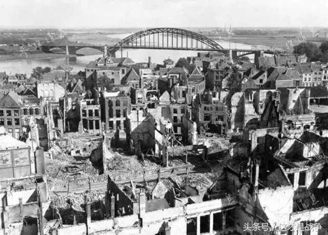 图八:遭德军优势火力攻击后,安恒市几成废墟,后方为安恒大桥