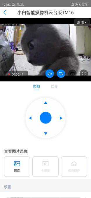 小白智能摄像头的操控方式有两种,第一种就是按动底部的上下左右按键,进行调整镜头,第二则是触摸屏幕进行转动镜头。手指按住屏幕,从右向左滑,镜头及画面就向左,反之向右。