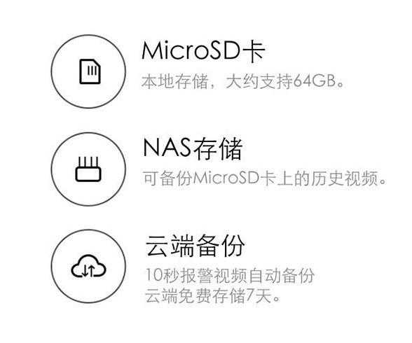 自动循环录像及多种存储方式,也是这款摄像头的优势。
