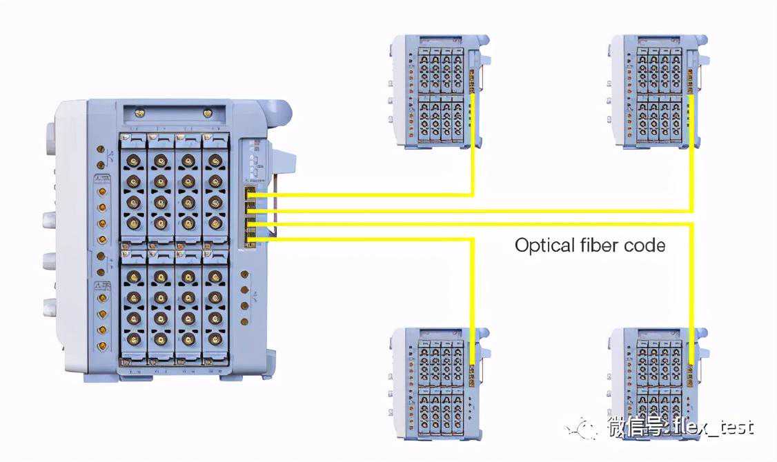 最多160-CH的多单元同步(/C50选件),通过使用光纤线,将最多四个子单元连接到单个主单元,可以将通道数扩展到160个。从主机同步子单元的测量开始/停止,触发和采样时钟。