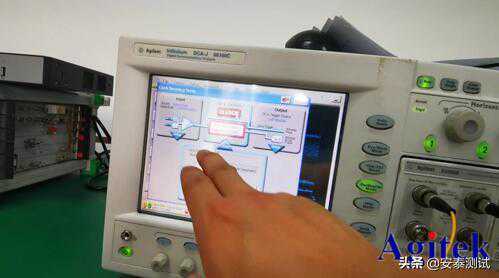 光信号发生器(光纤交换机)连接Agilent83496B光电时钟恢复模块DataInputs口内部进行时钟恢复处理后从DataOutputs口输出,连线至安捷伦86105C光电采样模块的光输入口,内部进行光电转换并测试。