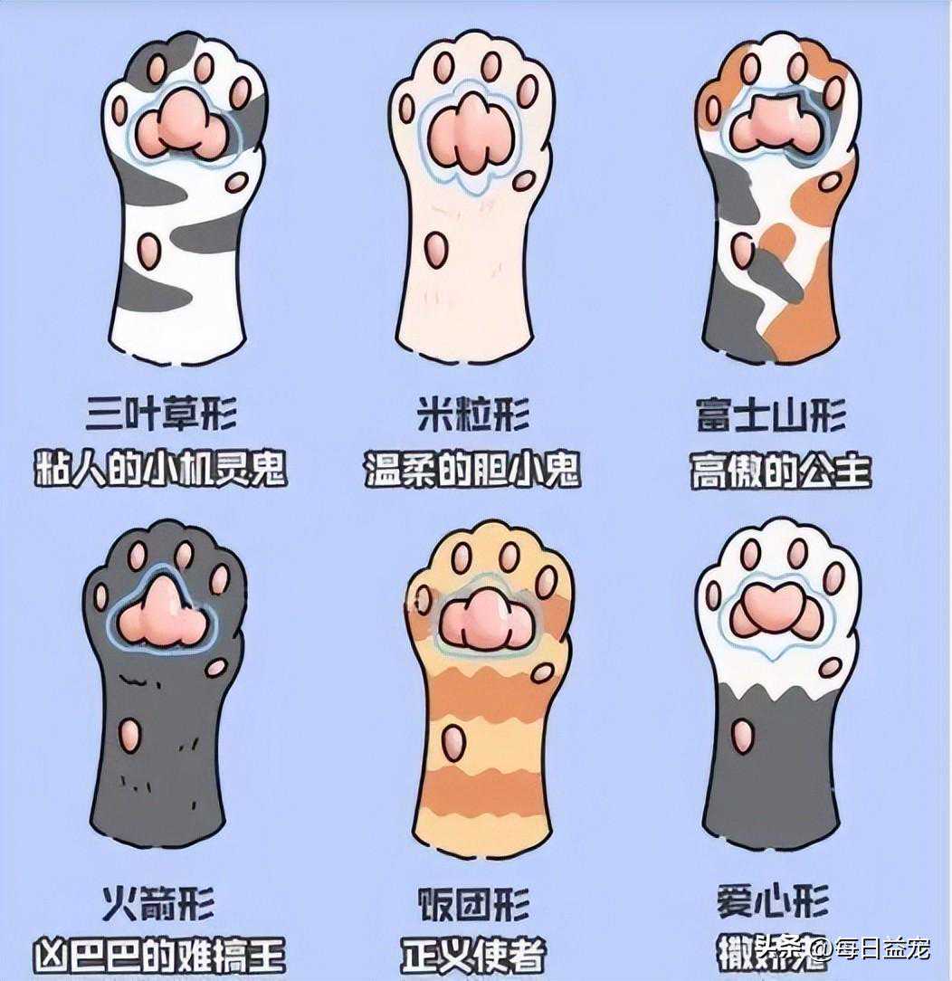 这样一看,是不是立马觉得清晰多了,大家可以对照着图片,找出自家猫主子的肉垫类型,看一看是否符合吧!