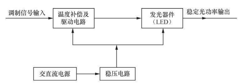 发光二极管是比较稳定的半导体发光器件,只要工作环境的温度保持一定,其输出光功率就可以在长时间内保持稳定。为了稳定发光二极管的输出光功率,一般采用如图1所示的温度补偿式的稳定电路。