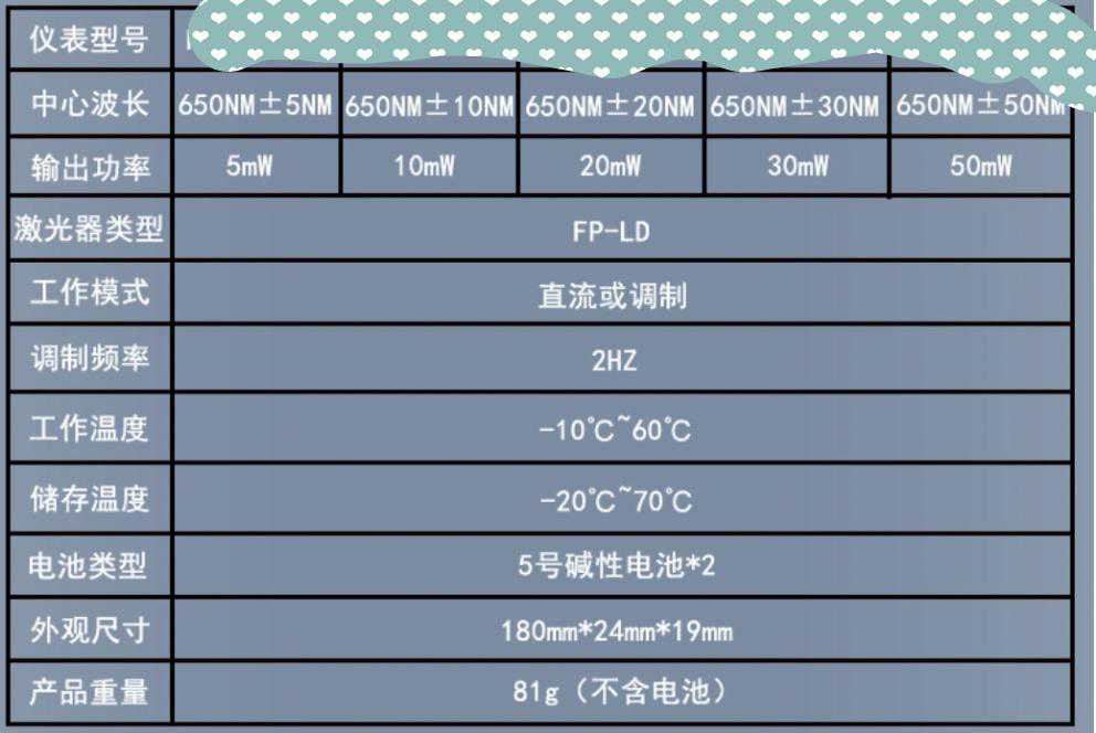 ·可见光光源一般用于简单的光纤断纤障碍测试、光器件的损耗测量、端面检查、纤芯对准及数值孔径测量等,以氦-氖气体激光器作为发光器件。