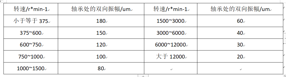 4.泵的振动值应符合产品技术文件的规定,若无规定时,立式泵的振动值不应大于0.13mm,卧式泵的振动值应符合下表规定;