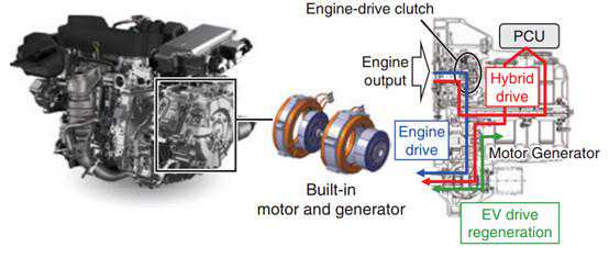 i-MMD的PCU(动力控制单元)实现了高度集成和轻量化,分析车辆工况来控制不同的行驶模式。PCU是i-MMD中Multi-Modes三种驾驶模式EVdrive,Hybriddrive和Enginedrive互相切换的关键部件:在EVdrive,即纯电动模式下,离合器分离,发动机不工作,在此模式下最高时速仍可达120km/h;在Hybriddrive,即串联混动模式下,离合器分离,发动机发电,电机驱动;在Enginedrive,即发动机直联式行驶模式下,离合器接合,发动机为主要输出,电机会根据时机介入。由此可见,得益于异常强大的电机,i-MMD的三种模式的工作策略与其他混动系统有着很大的不同。不过,以电机为核心动力的i-MMD真的能“秒”混动界多年的老大丰田吗?