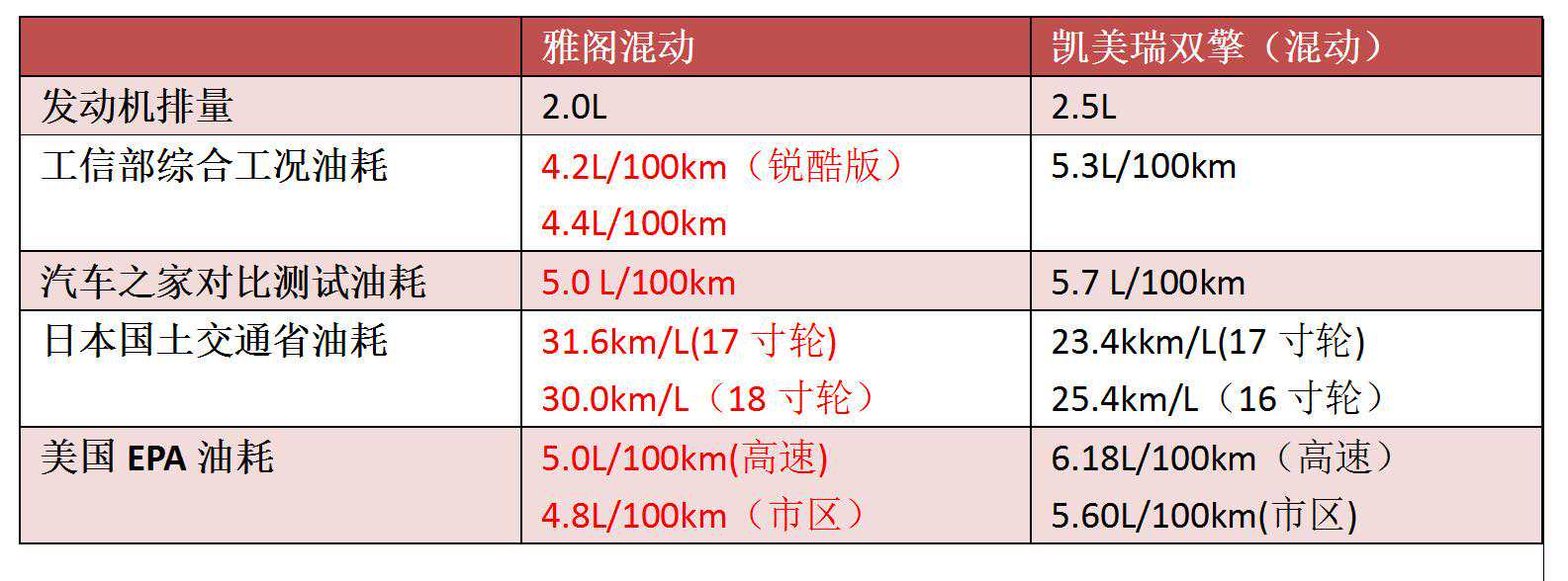 从各方面的数据来看,使用i-MMD的雅阁比使用THS-II的凯美瑞每升油可以多跑个5-8公里的样子,本田在0-100km/h加速方面些许的舍弃换来的是更低的油耗,这或许是混合动力最需要的地方。