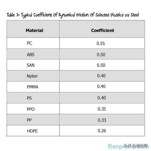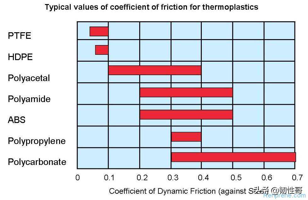 下图为:常见塑料的摩擦系数和表面能关系表: