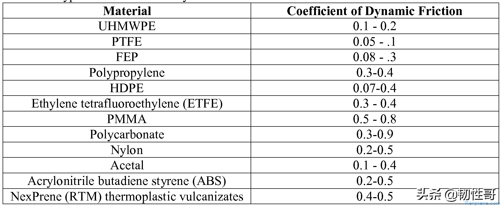 三、下面是网络收集的一些常见高分子材料的摩擦系数表: