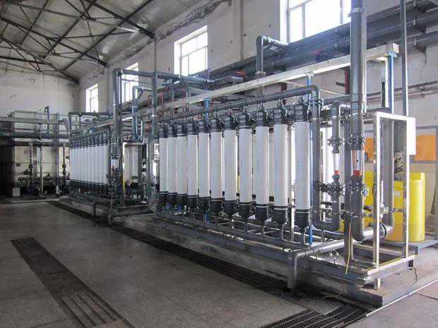 设备主要由预处理和超滤系统两大部分组成,预处理的目的是使原水经过初步的处理,主要是去除水中各种悬浮物、胶体,以及达到后续超滤水处理设备进水要求。防止膜表面上污染,即防止悬浮杂质、微生物、胶体物质等附着在膜表面上或污堵元件水流通道,确保膜免受机械和化学损伤,以使膜有良好的性能和足够长的使用寿命,保证UF膜装置稳定运行及延长使用寿命。其核心作用还是靠超滤膜的过滤功能去除水中的重金属物质,达到水的纯净。