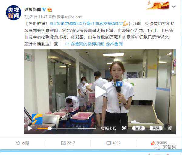 山东献血的消息一经发布,